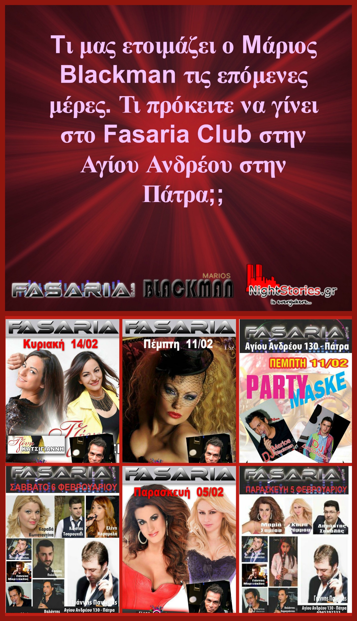 Τι ετοιμάζει ο Marios Blackman τις επόμενες μέρες @ Fasaria Live (Patra) Shows / EventsSTART February 3, 2016 Share FacebookTwitterPinterestWhatsApp Tι μας ετοιμάζει ο Μάριος Blackman αυτές τις μέρες?? Όλα όσα θα γίνουν, δείτε με τα μάτια σας. Θα γίνει χαμός!! serty Search Latest articles ο Κυριακος Παπαδοπουλος και το επιτελειο του στο Metropolis Live στη Πατρα October 30, 2023 La Loop Bar June 13, 2023 Μαρια Σαμιου δια χειρος Τσιπα Ηλία May 5, 2023 Μαρίνα Κωνσταντινίδου – μια ανερχόμενη λαϊκή τραγουδίστρια January 23, 2023 Previous articleBabies Ball @Arena the Place ( Patra ) | 6.2Next articleΠέμπτη,Παρασκευή, Σάββατο μαζί σας ,αλλά όχι αυτή την Πέμπτη @Arena the Place ( Patra ) 4.2 Related articles ο Κυριακος Παπαδοπουλος και το επιτελειο του στο Metropolis Live στη Πατρα START October 30, 2023 La Loop Bar Night Stars June 13, 2023 Μαρια Σαμιου δια χειρος Τσιπα Ηλία START May 5, 2023